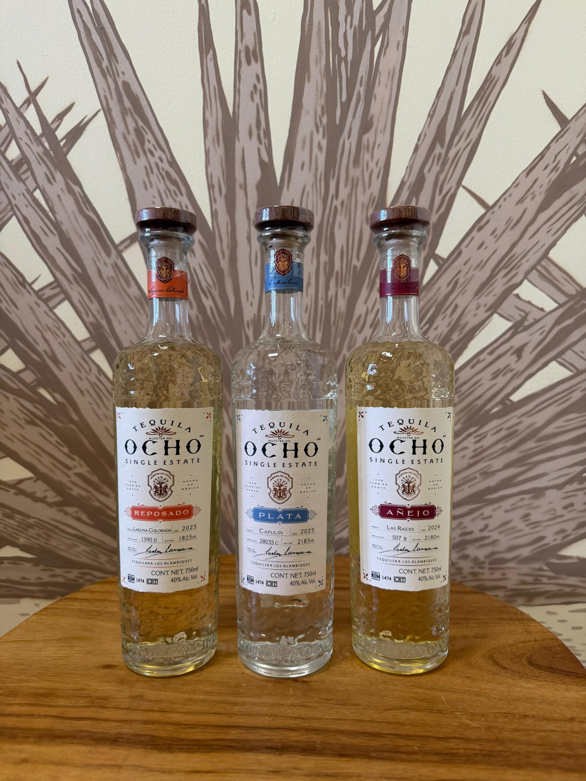 Contenido: Ocho Plata – Capulín 2025 Ocho Reposado – Laguna Colorada 2025 Ocho Añejo – Las Raíces 2024